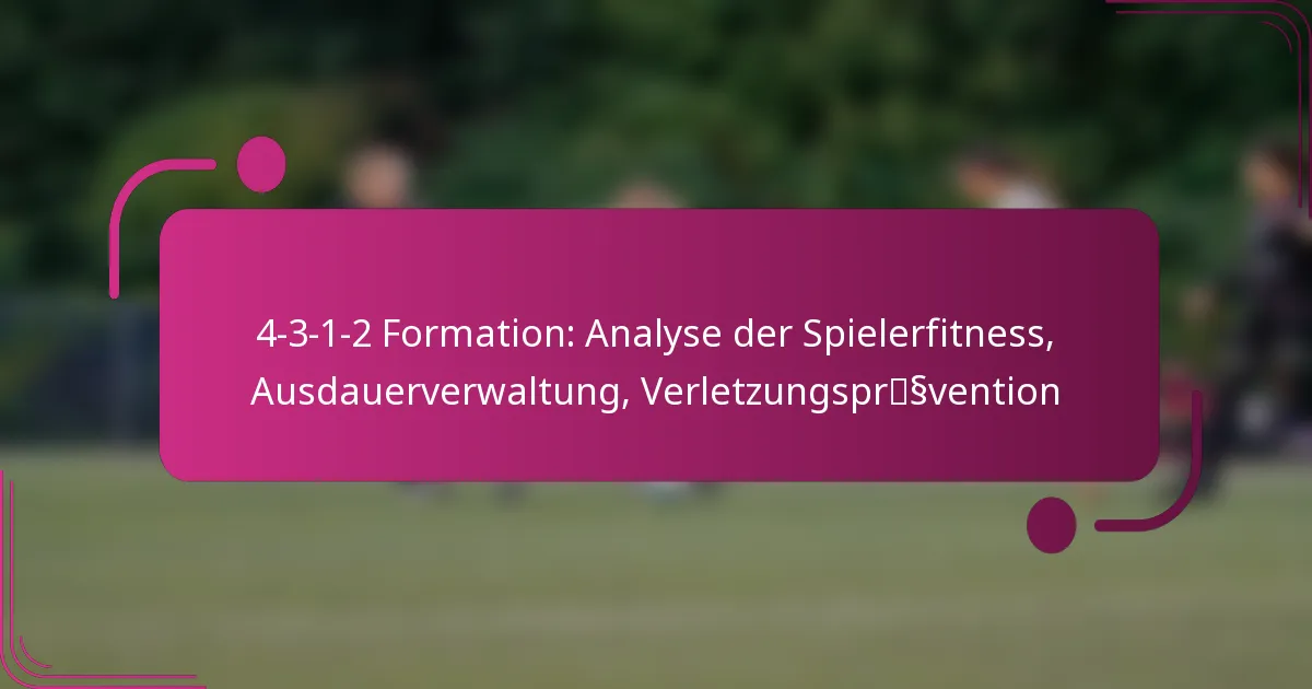 Die 4-3-1-2-Formation ist ein taktisches Setup im Fussball, das die Kontrolle im Mittelfeld und einen ausgewogenen Ansatz zwischen Verteidigung und Angriff betont. Um in dieser Formation erfolgreich zu sein, müssen die Spieler auf Fitness, Ausdauerverwaltung und Verletzungsprävention achten, um sicherzustellen, dass sie den Anforderungen sowohl offensiver als auch defensiver Rollen effektiv gerecht werden können.