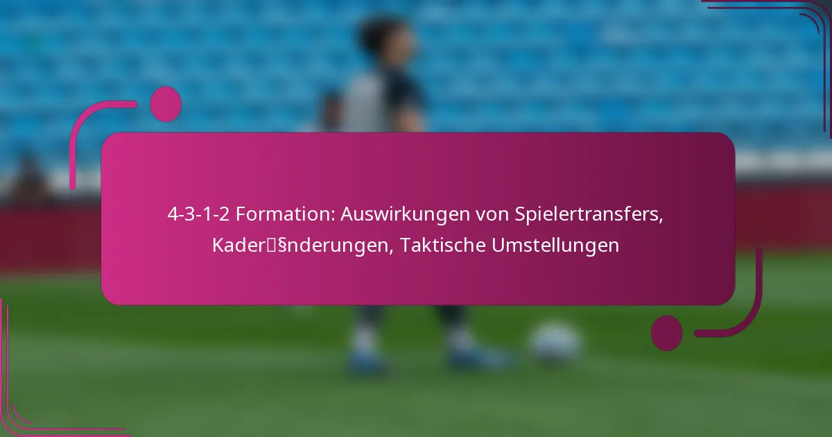 Die 4-3-1-2-Formation ist ein taktisches Setup im Fussball, das eine starke Präsenz im Mittelfeld mit vier Verteidigern, drei Mittelfeldspielern, einem offensiven Mittelfeldspieler und zwei Stürmern betont. Spielertransfers und Kaderänderungen können diese Formation erheblich beeinflussen, da sie die Teamdynamik verändern und von den Trainern verlangen, ihre Strategien anzupassen, um eine wettbewerbsfähige Leistung aufrechtzuerhalten. Die Einführung neuer Spieler kann die bestehende Struktur verbessern oder stören, was taktische Neukonfigurationen für den Erfolg unerlässlich macht.